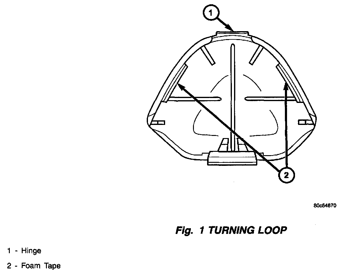 2. Apply a coating of adhesive promoter such as 3M p/n 06396 or equivalent, to the inside of the cover in the two areas where the foam tape will be applied, and to the turning loop(Fig.1).