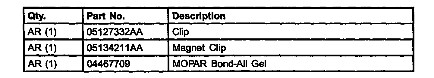 8. Attach magnet, p/n 05134211AA to the ridge formation on the roof, rearward of the attach point of the original clip assembly.