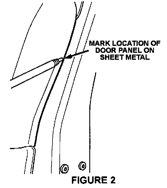 7. Mark the outline of the rear vinyl wrapped edge of trim panel on the sheet metal using a grease pencil (Figure 2).