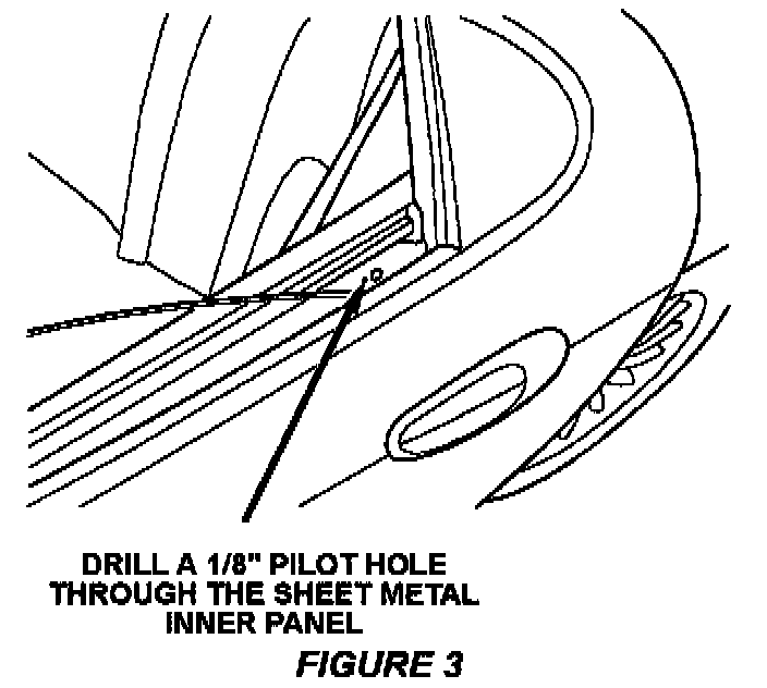 9. If not completed in Step 5, drill a 1/8" pilot hole through the sheet metal inner panel at the location marked in Step 5 (Figure 3).