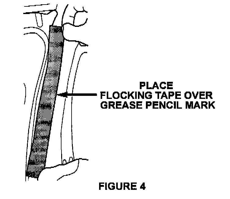 12. Using the flocking tape, p/n 04773968, completely cover the grease pencil mark made in Step 7 (Figure 4).