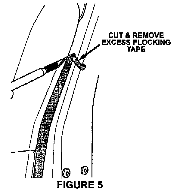 15. Using a sharp utility knife cut the flocking tape along the edge of the door trim panel (Figure 5). Care must be used not to cut too deep into the metal and not cutting the vinyl on the panel.