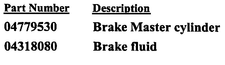 Recall - Brake Master Cylinder Malfunction: Overview