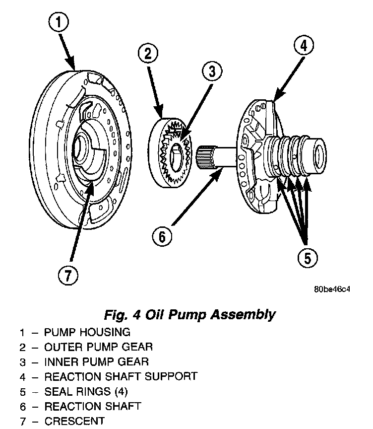 The oil pump is located in the pump housing inside the bell housing of the transaxle case. The oil pump consists of an inner and outer gear, a housing, and a cover that also serves as the reaction shaft support.