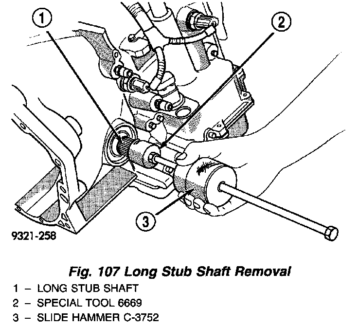 4. Remove long stub shaft from transaxle (Fig. 107).