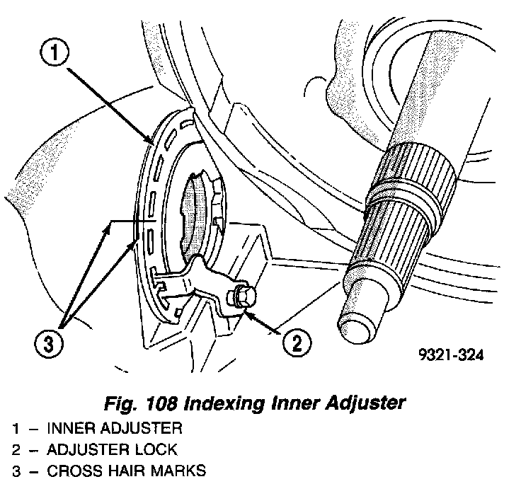 5. Index the inner differential adjuster with a cross hair as shown in (Fig. 108).