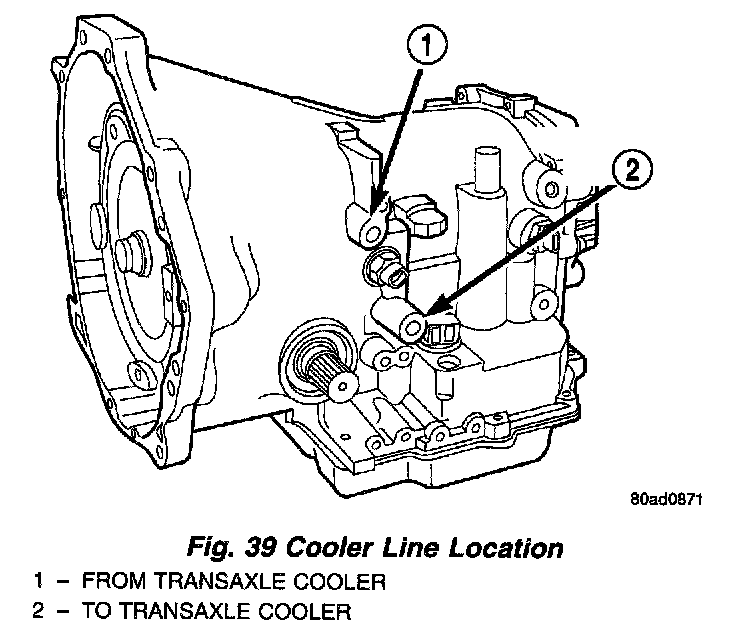 1. Disconnect the To cooler line at the oil cooler inlet and place a collecting container under the disconnected line (Fig. 39).