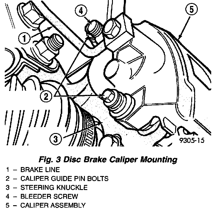 3. Remove the front caliper assembly from the front steering knuckle assembly (Fig. 3). Refer to Brakes and Traction Control for caliper removal procedure.