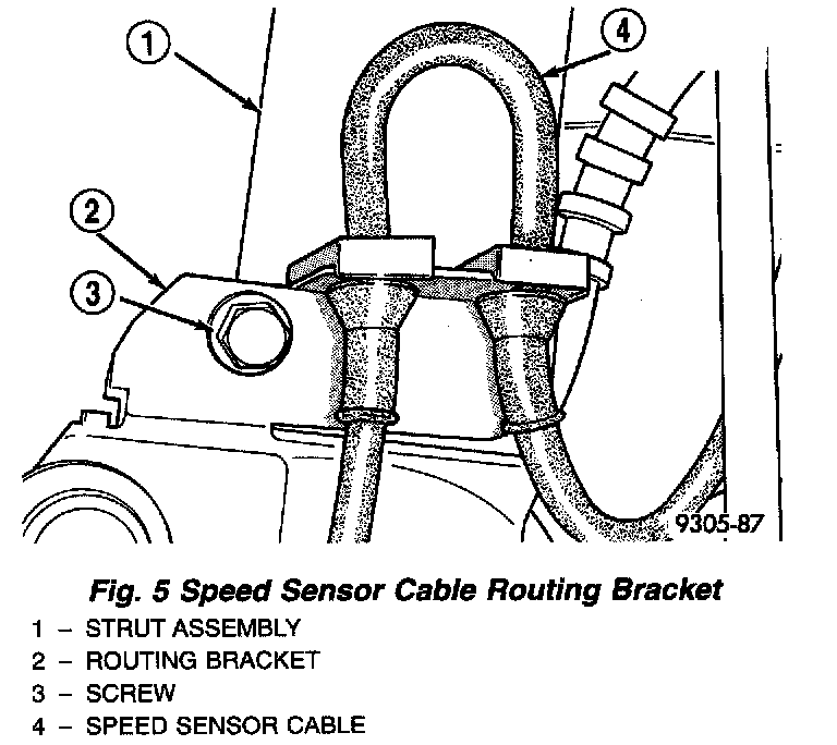 5. Remove the speed sensor cable routing bracket from the strut assembly (Fig. 5).