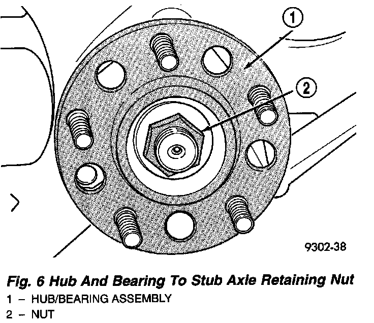 CAUTION: The hub and bearing assembly to stub shaft retaining nut is a prevailing torque nut and can not be re-used. A NEW retaining nut MUST be used when assembled.