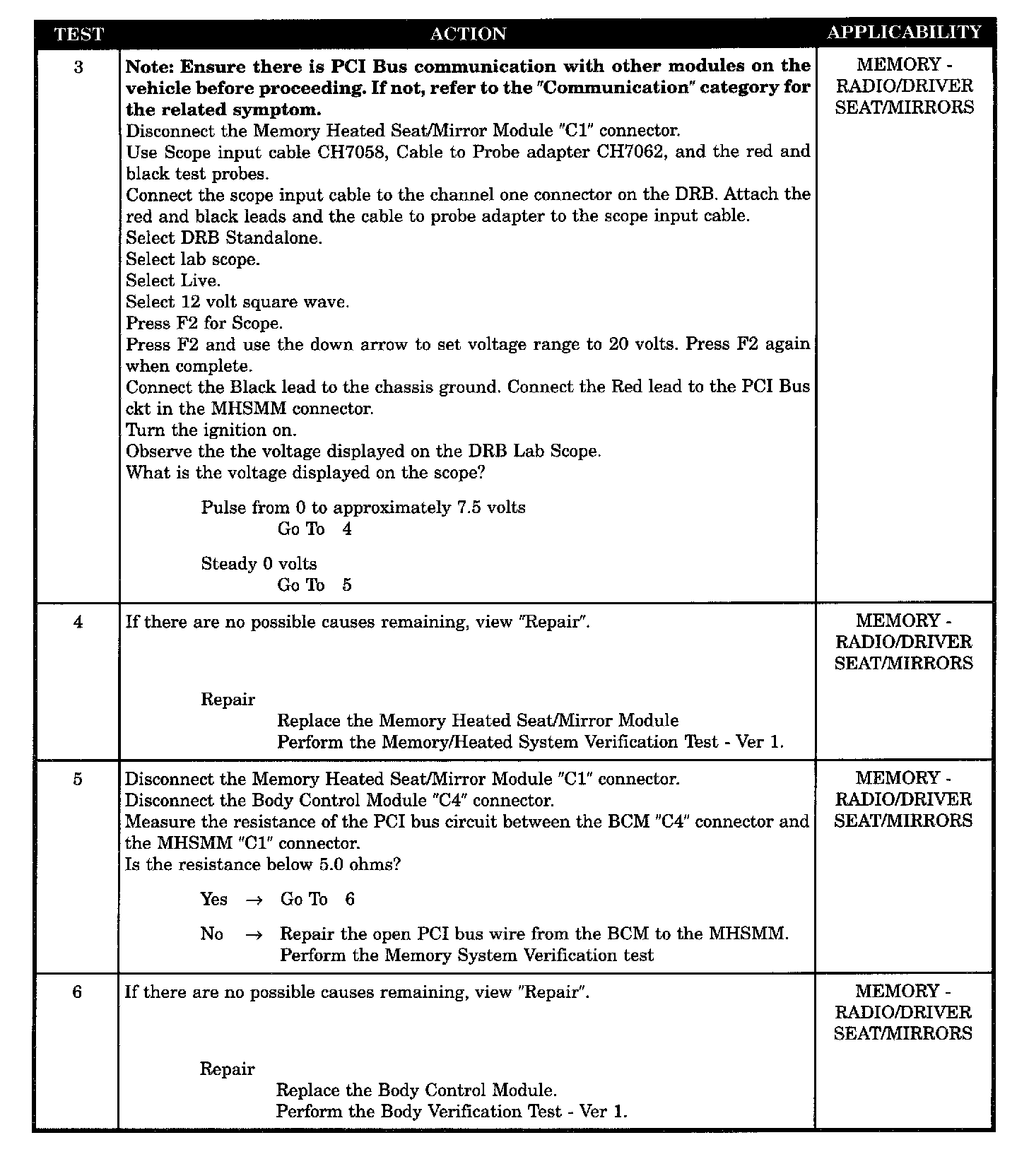 BUS +/- SIGNAL OPEN FROM MEMORY HEATED SEAT/MIRROR MODULE