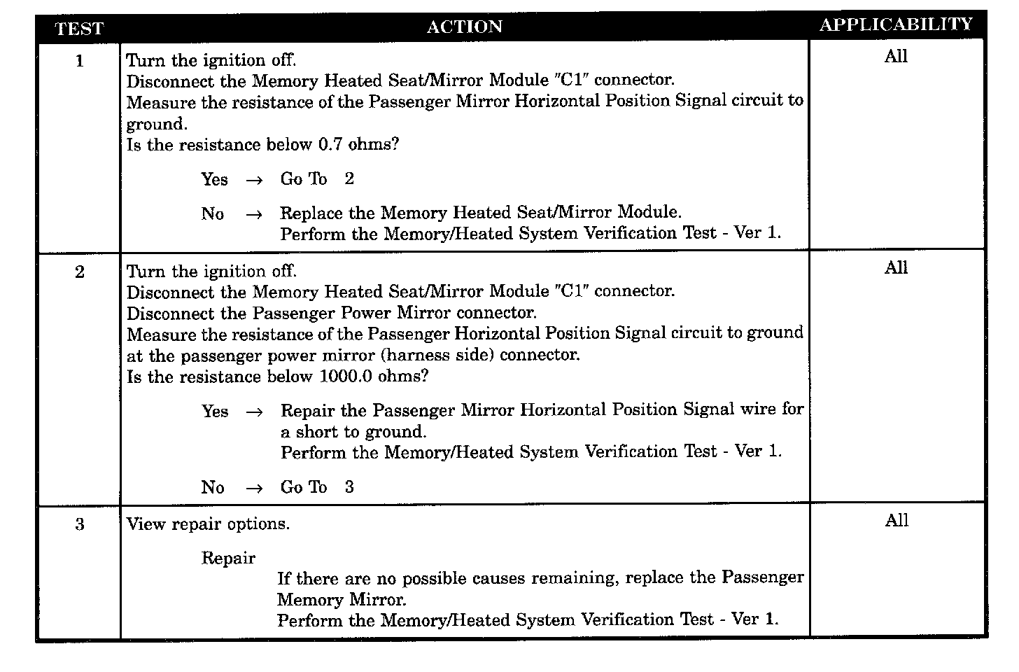 PASSENGER MIRROR HORIZONTAL SENSOR OUT OF RANGE LOW