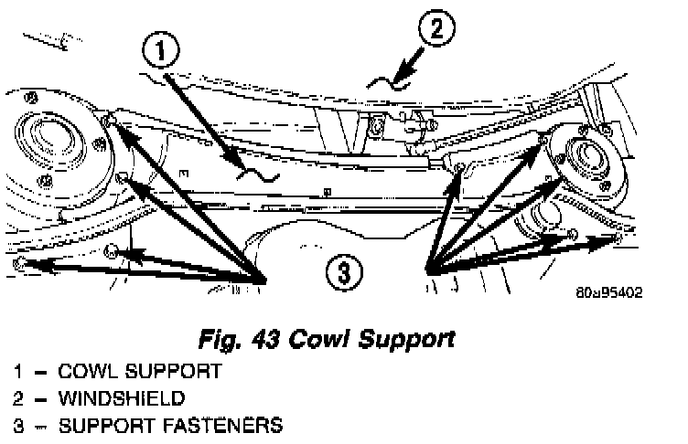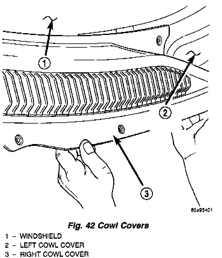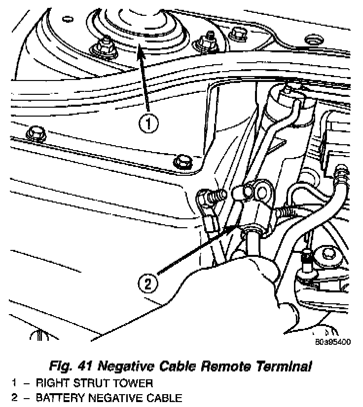2. Disconnect negative cable at remote jumper terminal located at right strut tower (Fig. 41).