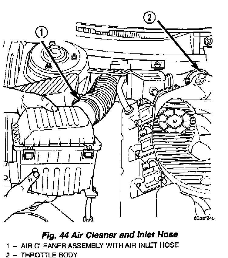 8. Remove air cleaner assembly and air inlet hose (Fig. 44).
