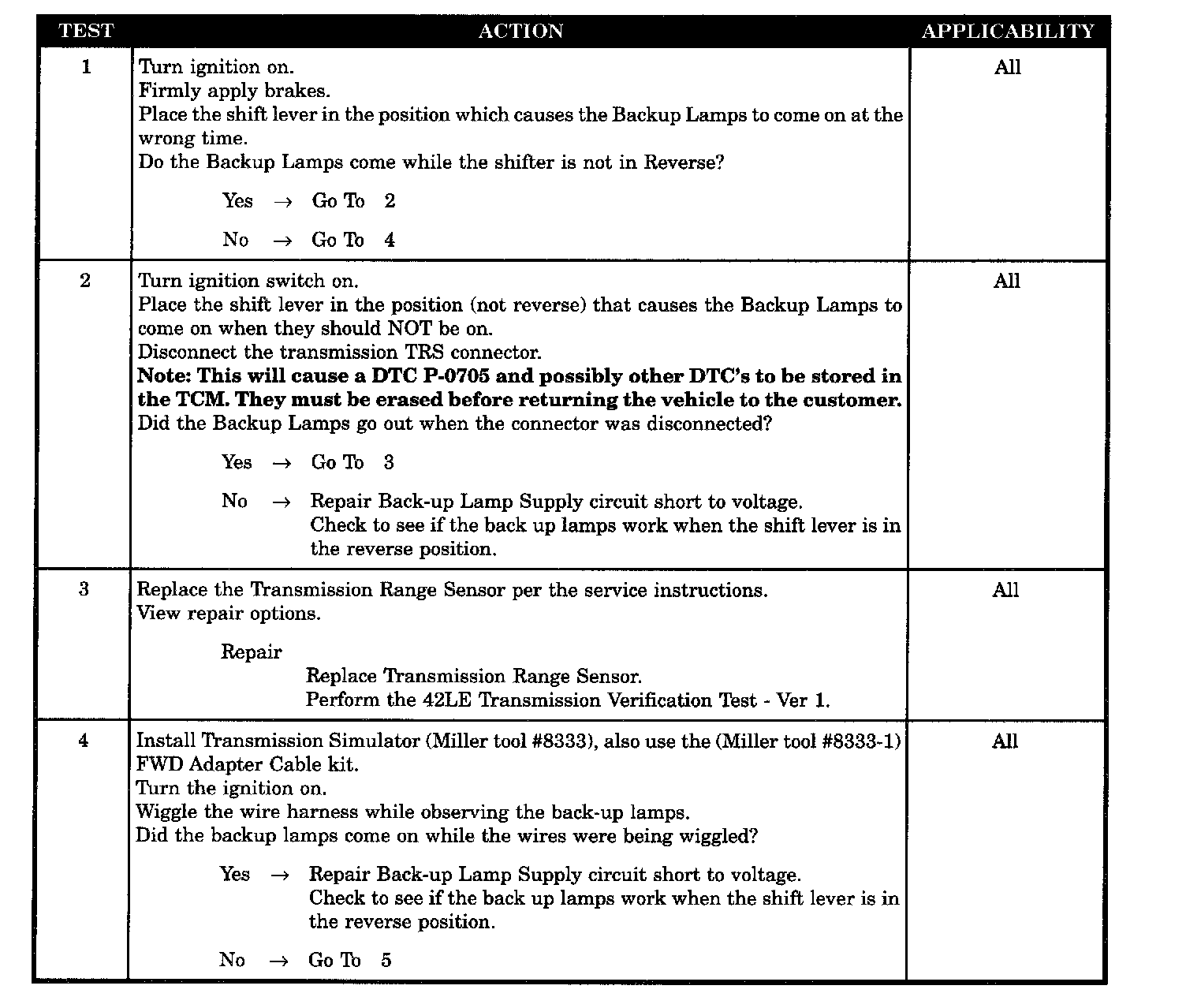 Backup Lamps Come On While Shifter Is Not In Reverse
