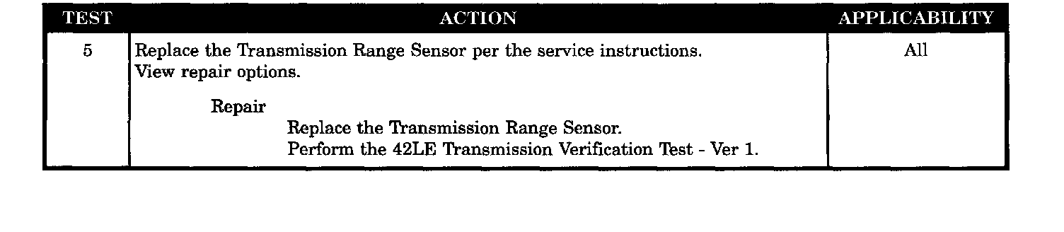DEFECTIVE TRANSMISSION RANGE SENSOR