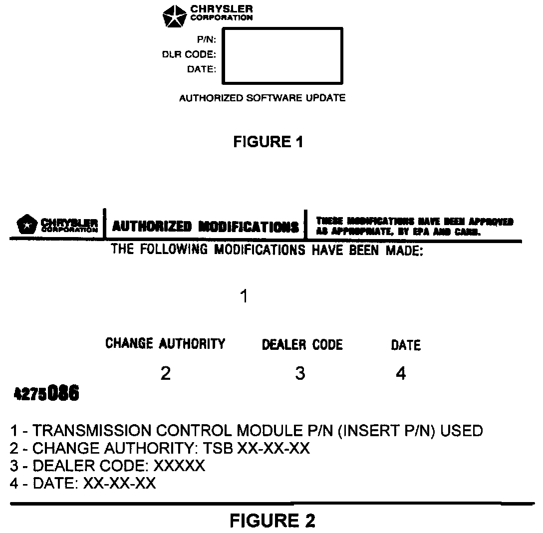 9. Type the necessary information on the "Authorized Software Update Label" p/n 04669020 (Figure 1). Attach the label to the PCM and cover the label with the clear plastic overlay.