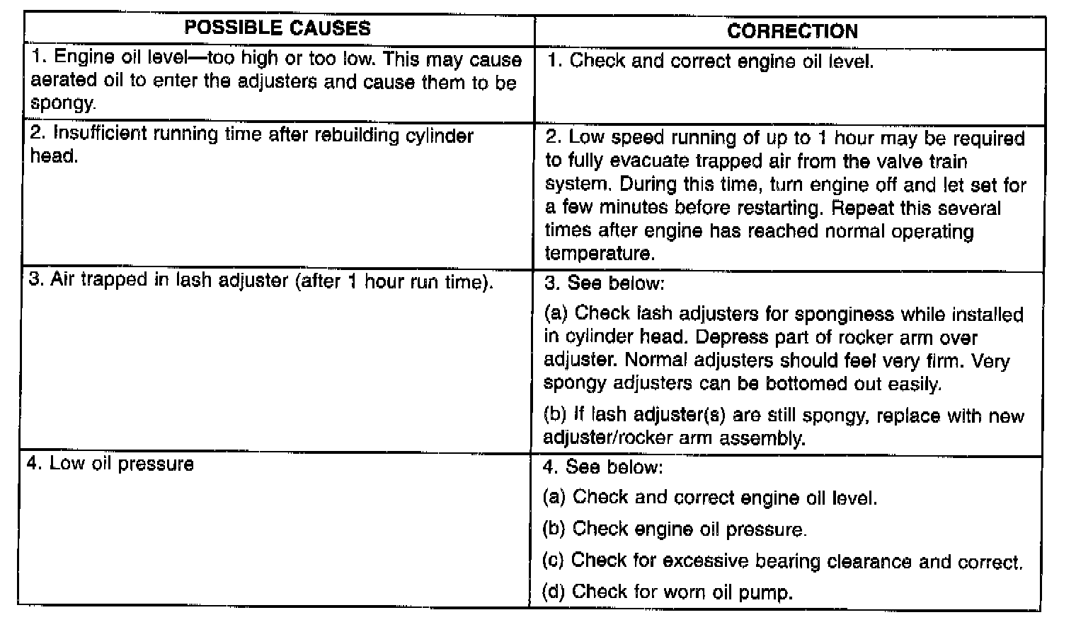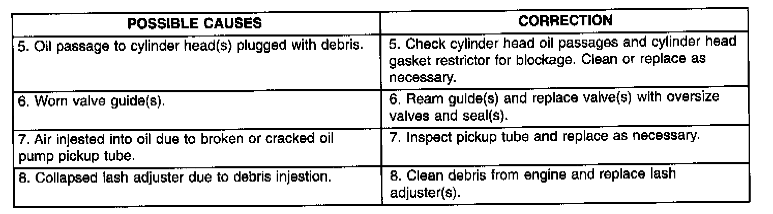 Refer to Lash Adjuster (Tappet) Noise Chart for Possible Causes and Correction of a lash adjuster (tappet) type noise.