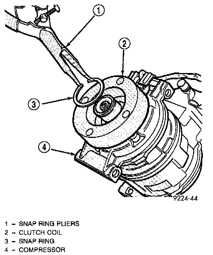 5. Remove snap ring retaining field coil onto compressor housing. Slide field coil off of compressor housing.