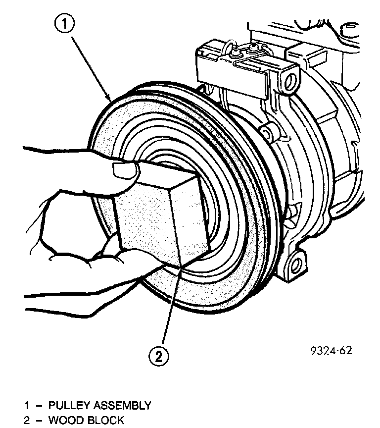 3. Install pulley assembly to compressor. If necessary, tap gently with a block of wood on the friction surface.
