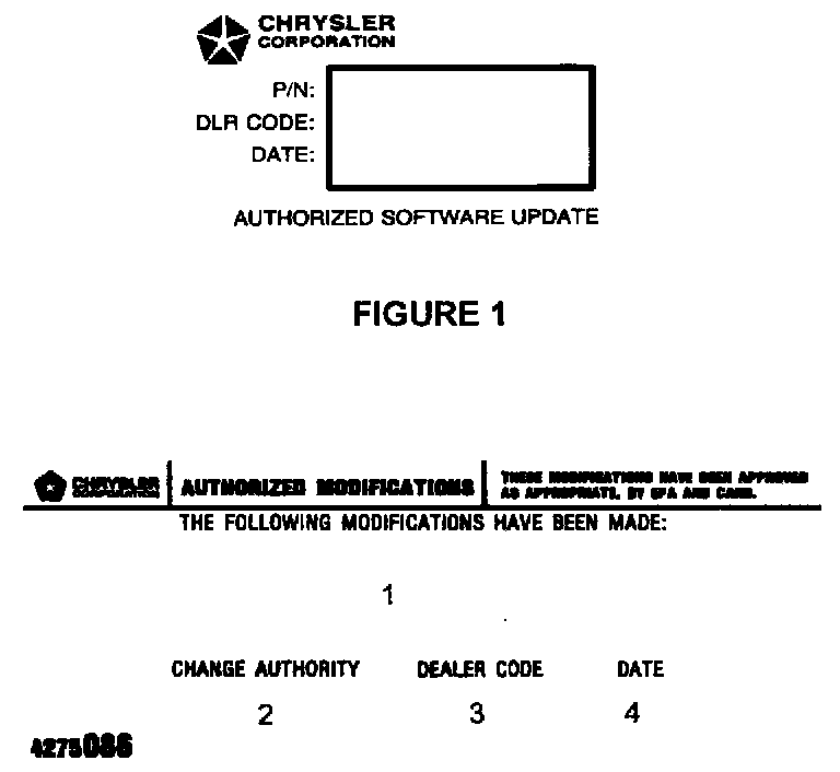 9. Type the necessary information on the "Authorized Software Update Label" p/n 04669020 (Figure 1). Attach the label to the PCM and cover the label with the clear plastic overlay.