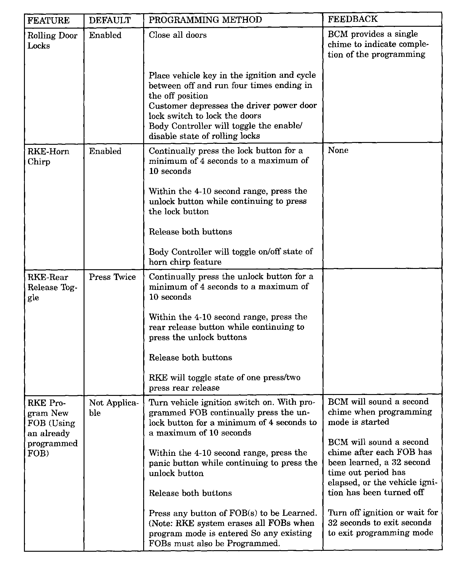 The body control module provides the following features: