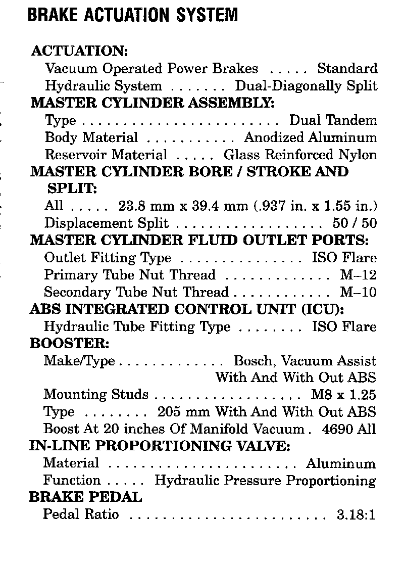 Brake Actuating System Specifications