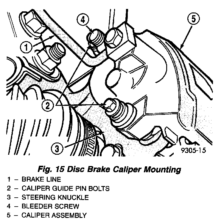 9. Install front brake caliper on steering knuckle. Refer to Front Disc Brake Service in Brakes and Traction Control for caliper installation procedure. Install the caliper to steering knuckle attaching bolts and tighten them to a torque of 19 Nm (168 inch lbs.).