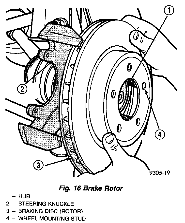 CAUTION: Hub and bearing assembly mounting surfaces on steering knuckle and halfshaft must be smooth and completely free of foreign material or nicks. When installing hub and bearing assembly into steering knuckle, be careful not to damage the flinger discon hub and bearing assembly. If flinger disc becomes damaged, hub and bearing assembly MUST not be used and MUST be replaced with a new hub and bearing assembly.