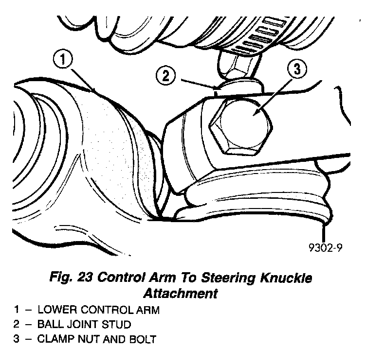 1. Install steering knuckle on ball joint stud. Install steering knuckle to lower ball joint attaching bolt and nut into steering knuckle. Tighten the attaching bolt to a torque of 55 Nm (40 ft. lbs.).