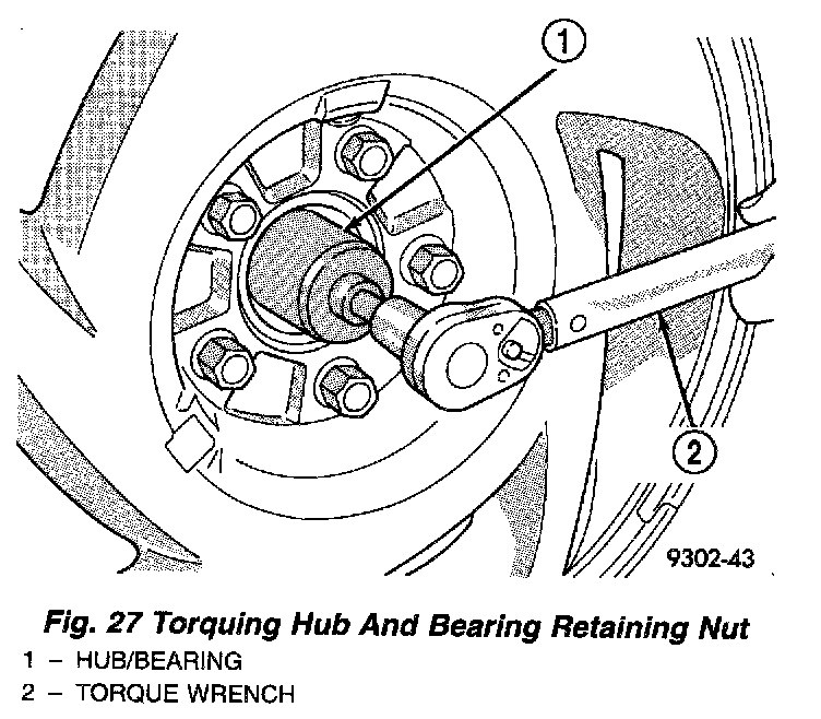 6. Install a NEW hub and bearing assembly to stub shaft retaining nut. Tighten, but do not torque the hub nut at this time.