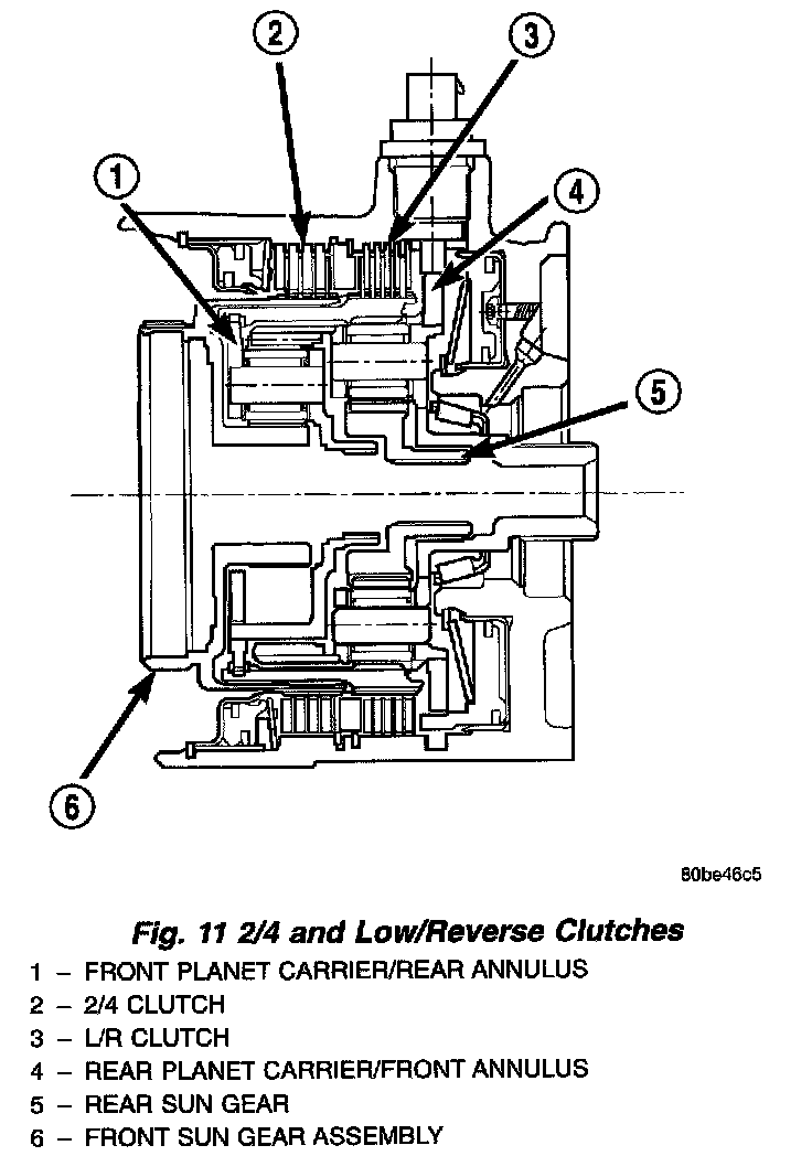 Two hydraulically applied multi-disc clutches are used to hold planetary geartrain components stationary while the input clutches drive others. The 2/4 and Low/Reverse clutches are considered holding clutches and are contained at the rear of the transaxle case (Fig. 11).