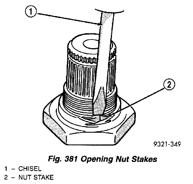 Using a small chisel, carefully open stakes on nut (Fig. 381)