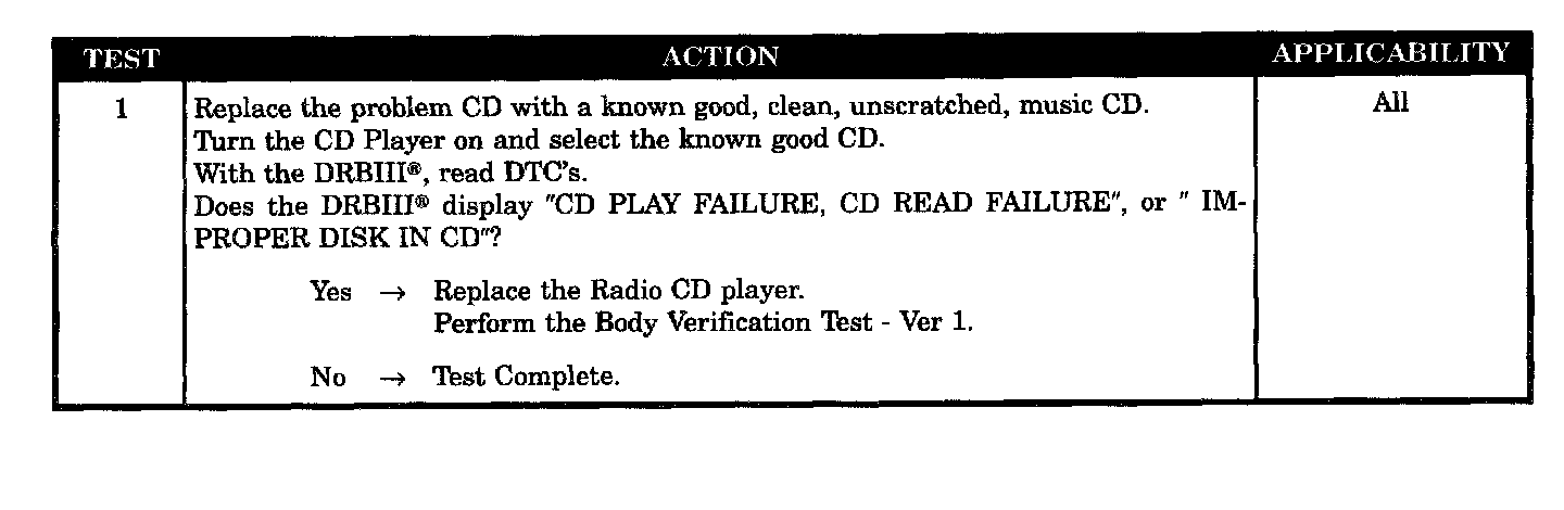 This symptom is diagnosed using the test CD PLAY FAILURE.