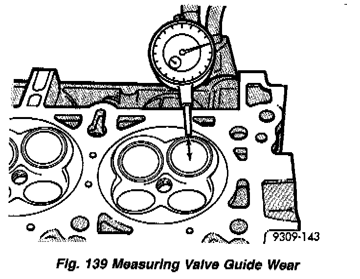 2. Measure valve stems for wear (Fig. 138). Refer to Cylinder Head Assembly, Valve, Intake/Exhaust, Specifications.