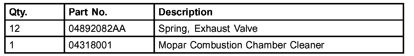 2. Install the revised exhaust valve springs, p/n 04892082AA, as described in Group 9 of the appropriate service manual.