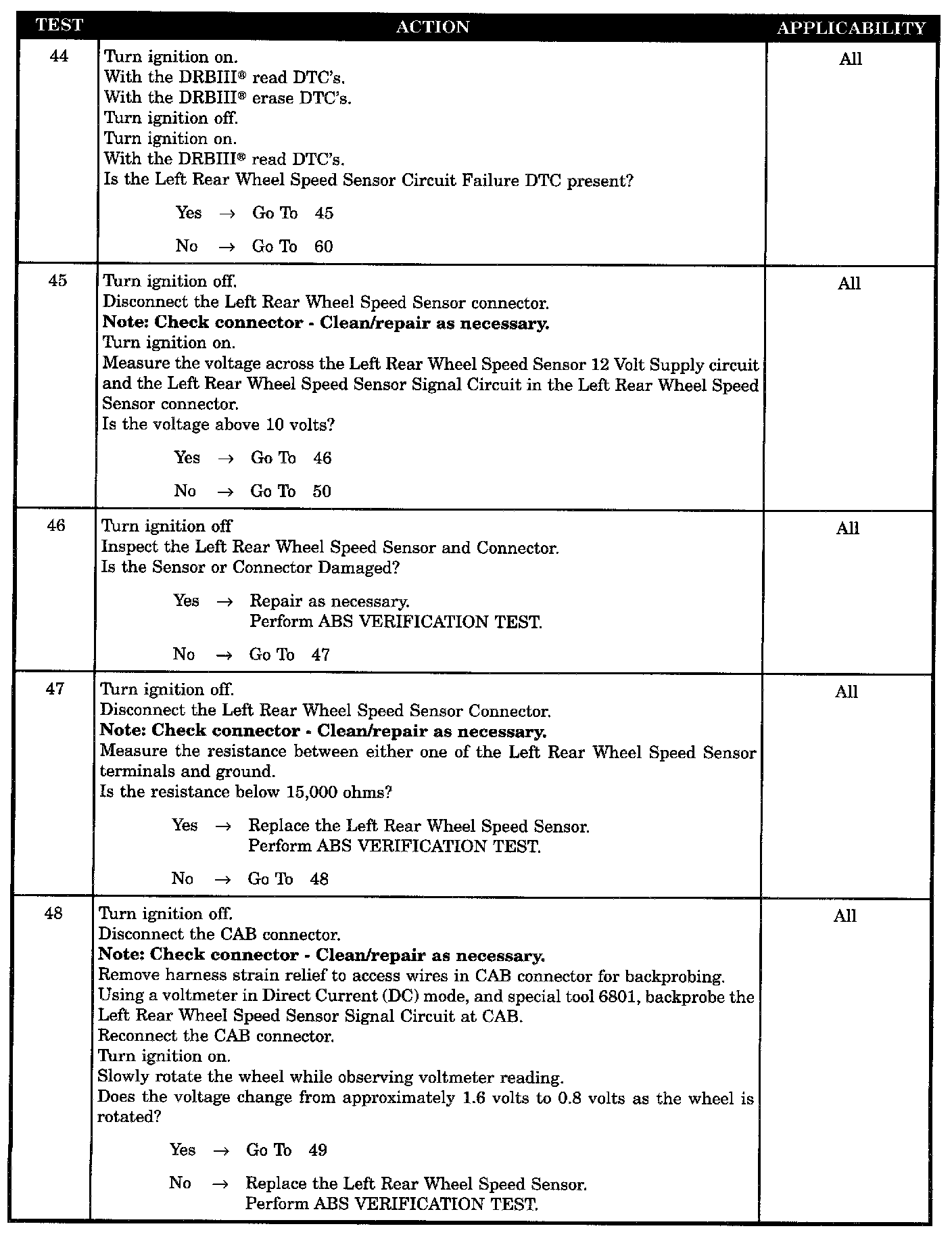 CAB DEFECTIVE - LEFT REAR WHEEL SPEED SENSOR SIGNAL CIRCUIT SHORTED TO GROUND