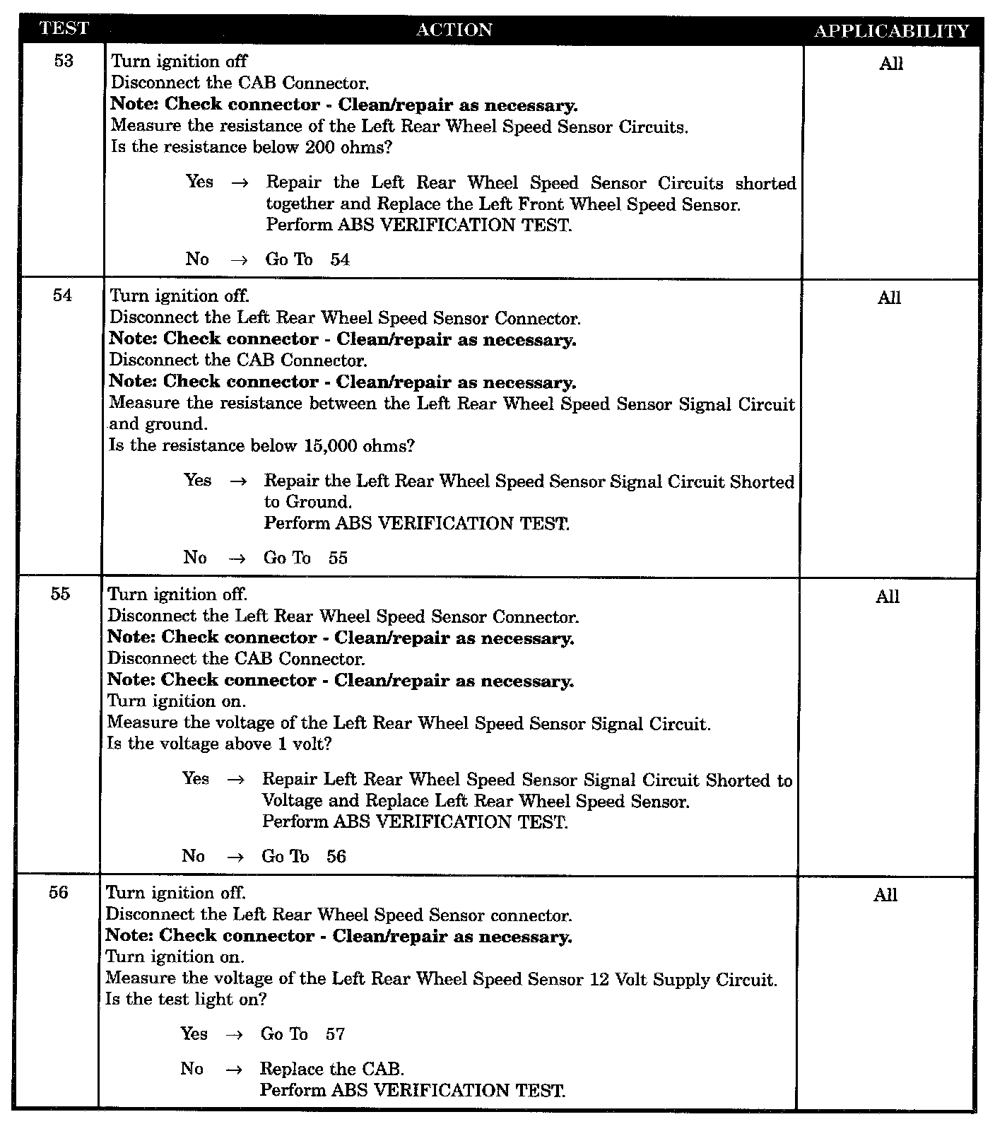 When Monitored: Ignition on. The CAB monitors the wheel speed circuit every 7 milliseconds (ms).