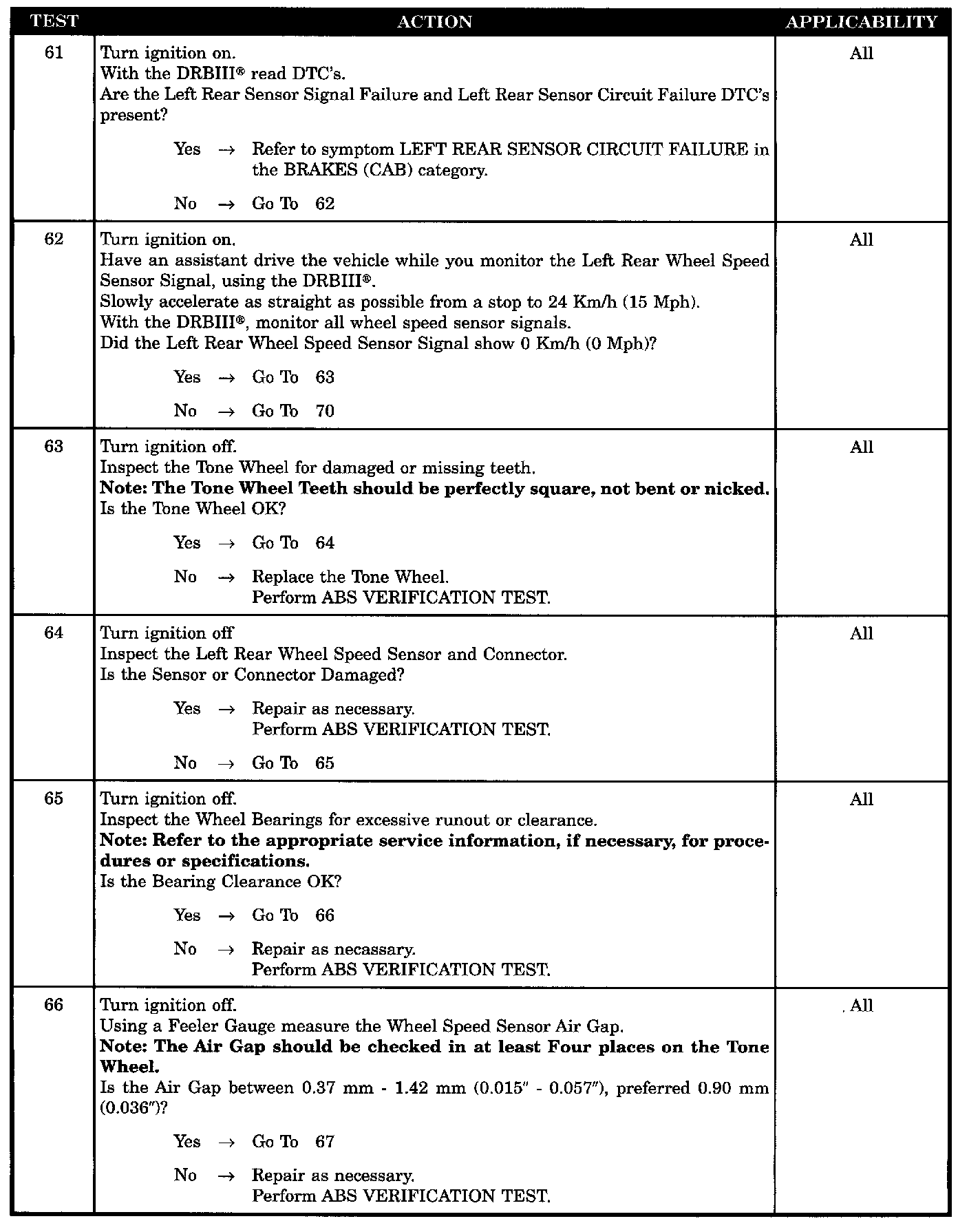 LEFT REAR WHEEL SPEED SENSOR FUNCTIONAL TEST