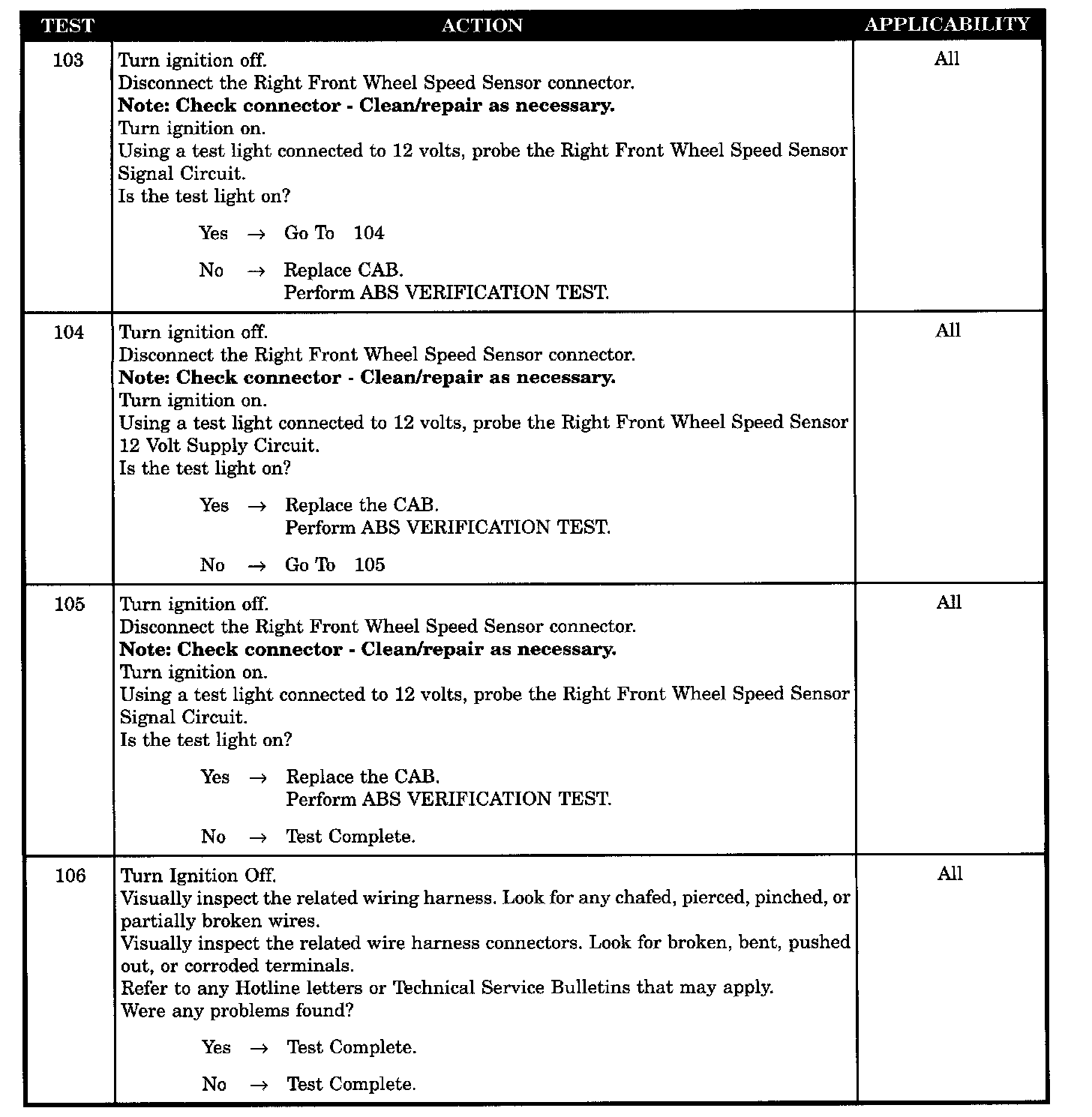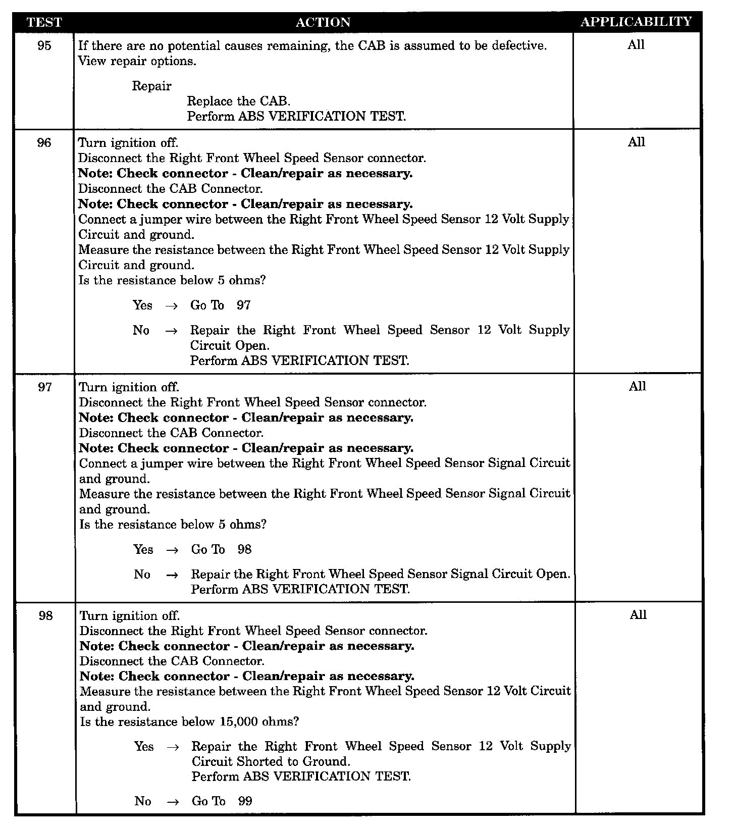 When Monitored: Ignition on. The CAB monitors the wheel speed circuit every 7 milliseconds (ms).