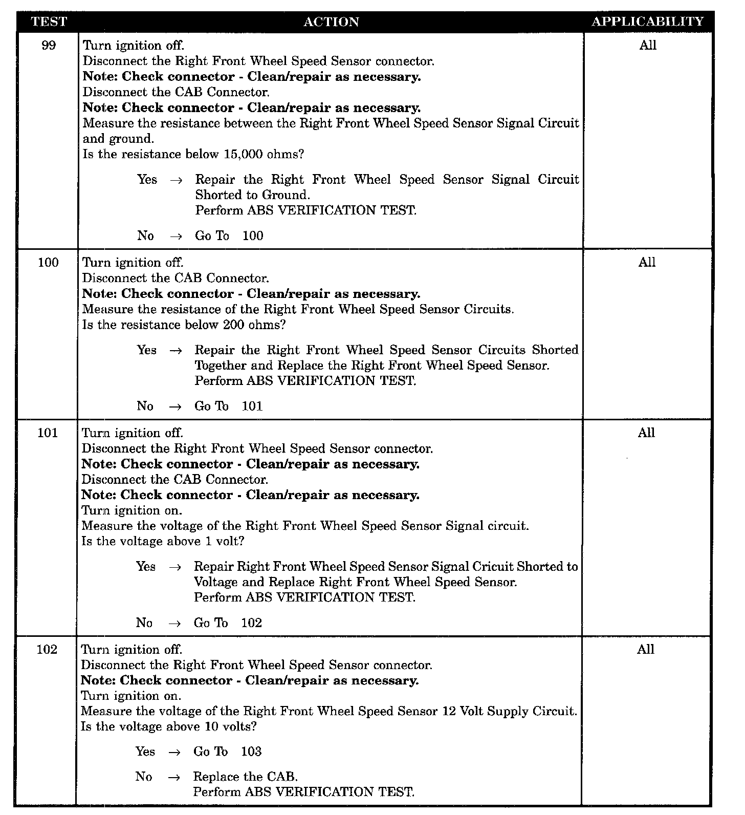 CAB DEFECTIVE - UNABLE TO READ RIGHT FRONT WHEEL SPEED SENSOR SIGNAL
