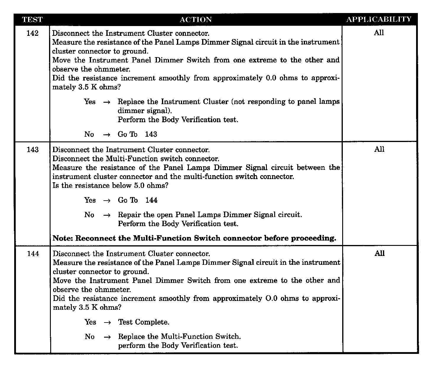 - Instrument cluster defective - panel lamps dimmer open