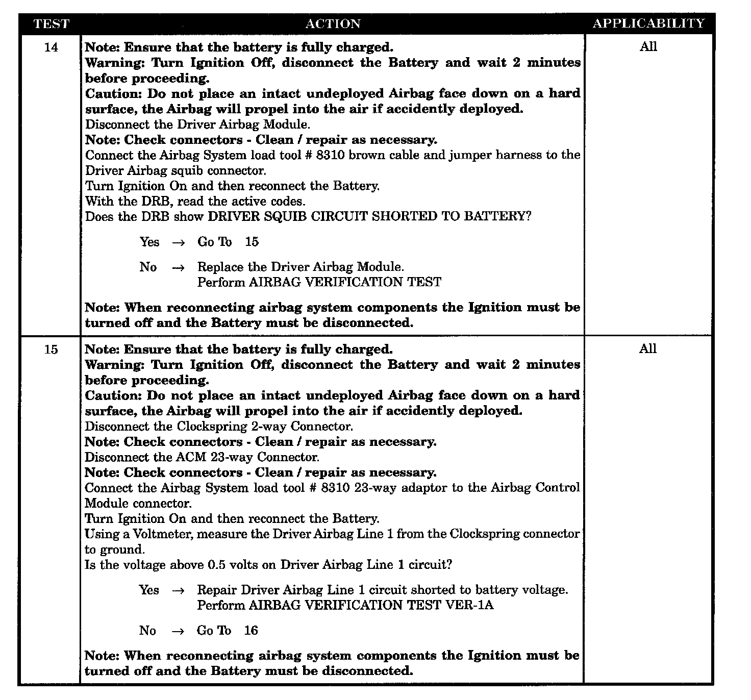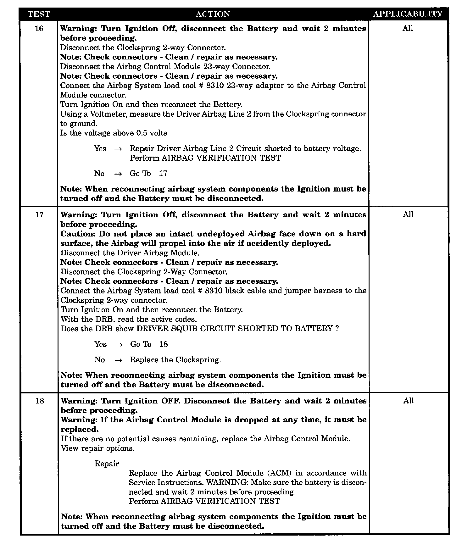 - ACM, driver airbag short to battery
