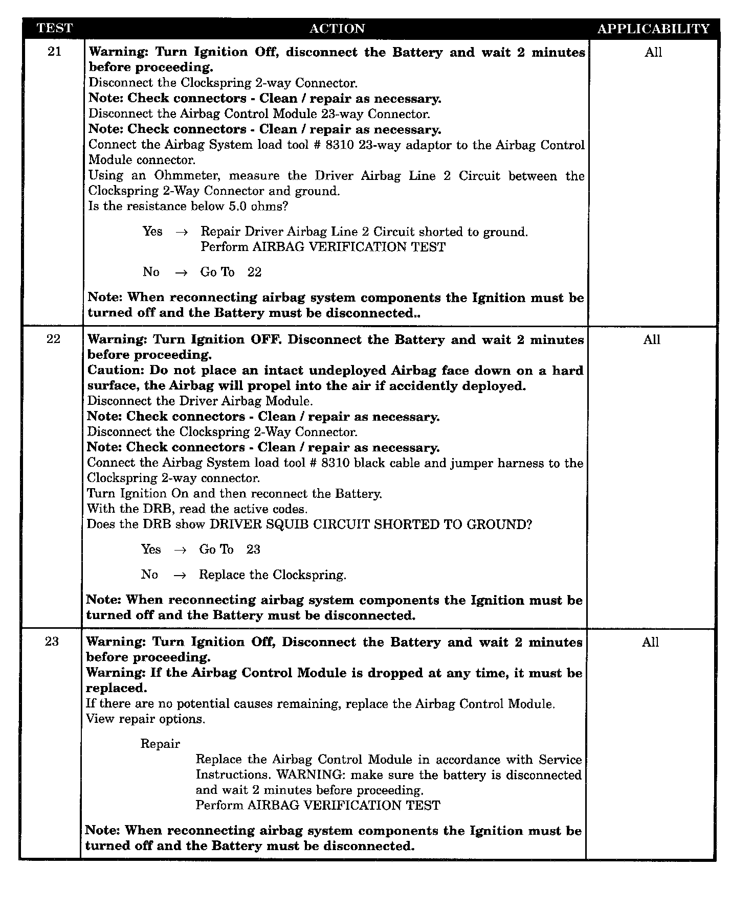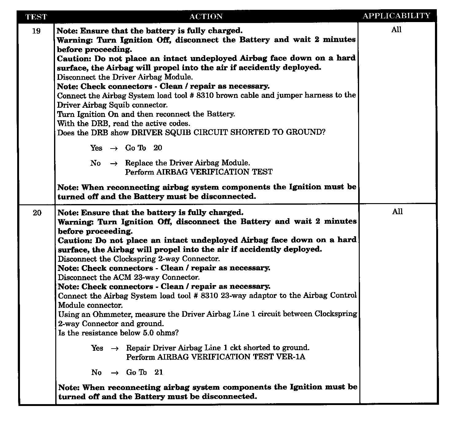 - ACM, driver airbag short to ground
