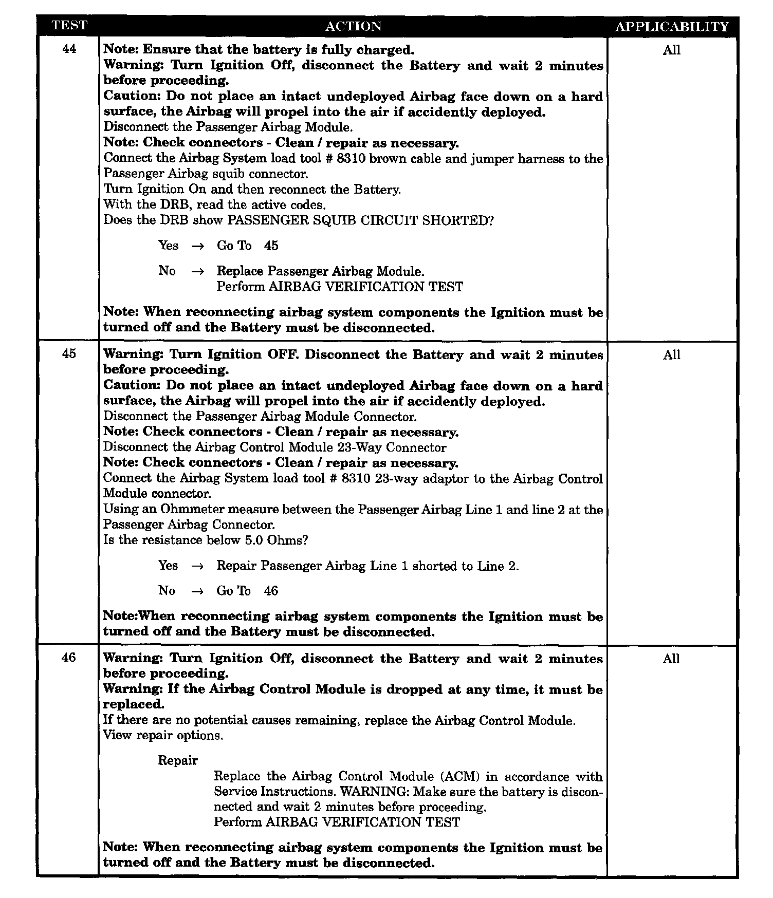 - ACM, PAB airbag circuit shorted