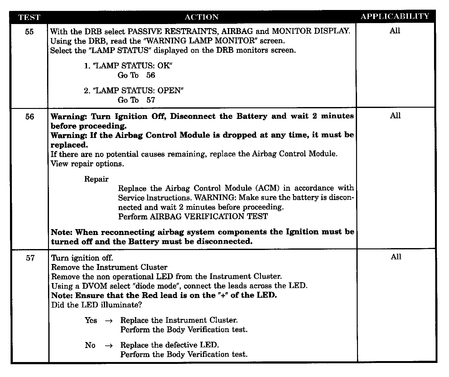 When the ignition is ON, the ACM monitors the PCI Bus for a message from the MIC containing the airbag warning lamp status Ok or Open. The MIC transmit the message one time per second in response to the ACM lamp ON/OFF message.