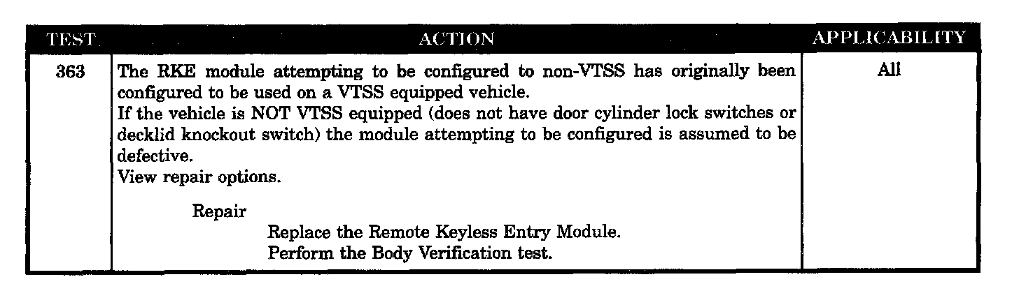 If the configuration of the module type has been previously set for VTSS, an attempt to set the module for non-VTSS will cause the new configuration to fail. This code should only appear if attempting to re-configure a used RKE module.