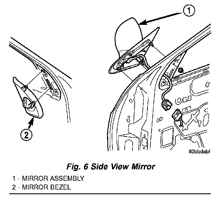 1. Remove side view mirror bezel or door trim panel as necessary.