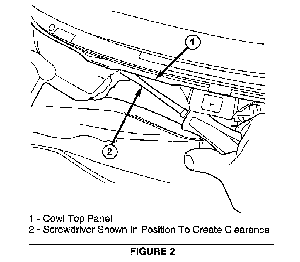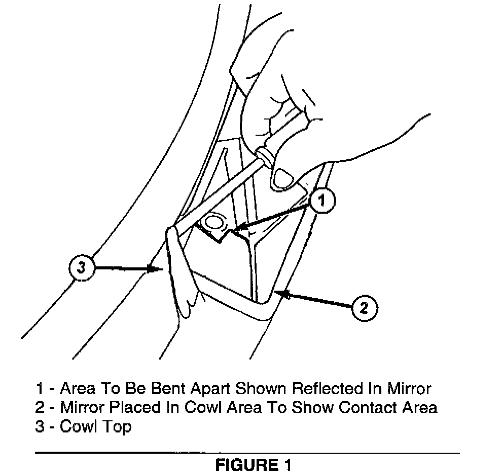 4. Use a screwdriver and bend the top of the cowl reinforcement panel down and away from the cowl top panel. A minimum clearance of 2.0 mm (.078 inch) should be obtained between the two panels (Figure 2).