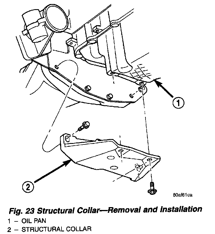 2. Remove structural collar from oil pan to transaxle (Fig. 23).
